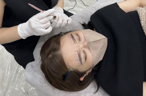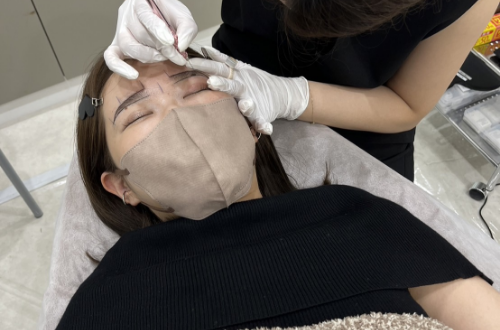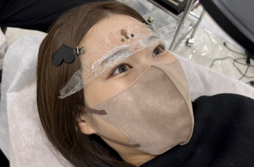 ために麻酔クリームを塗布し、同時に眉毛の色を決
