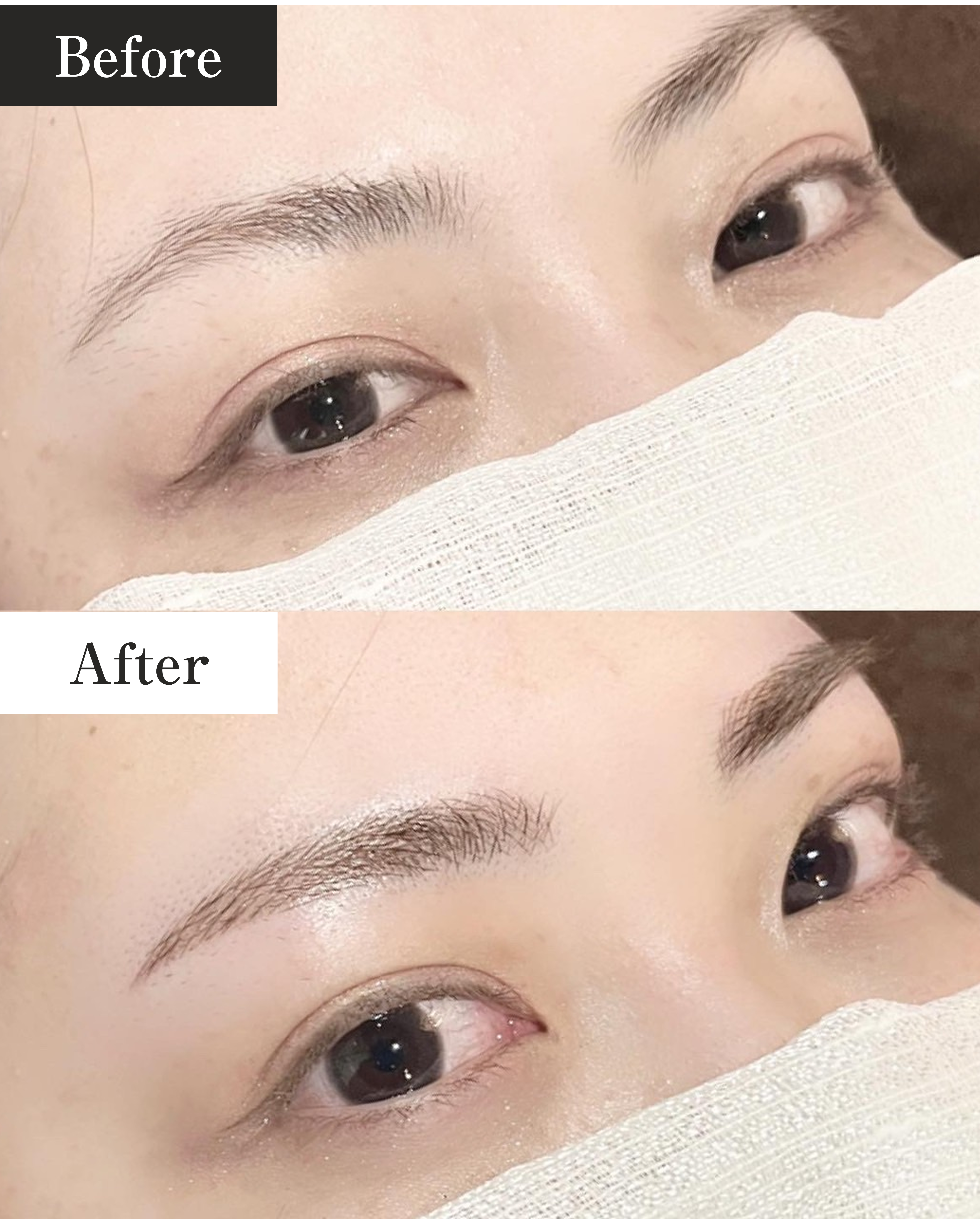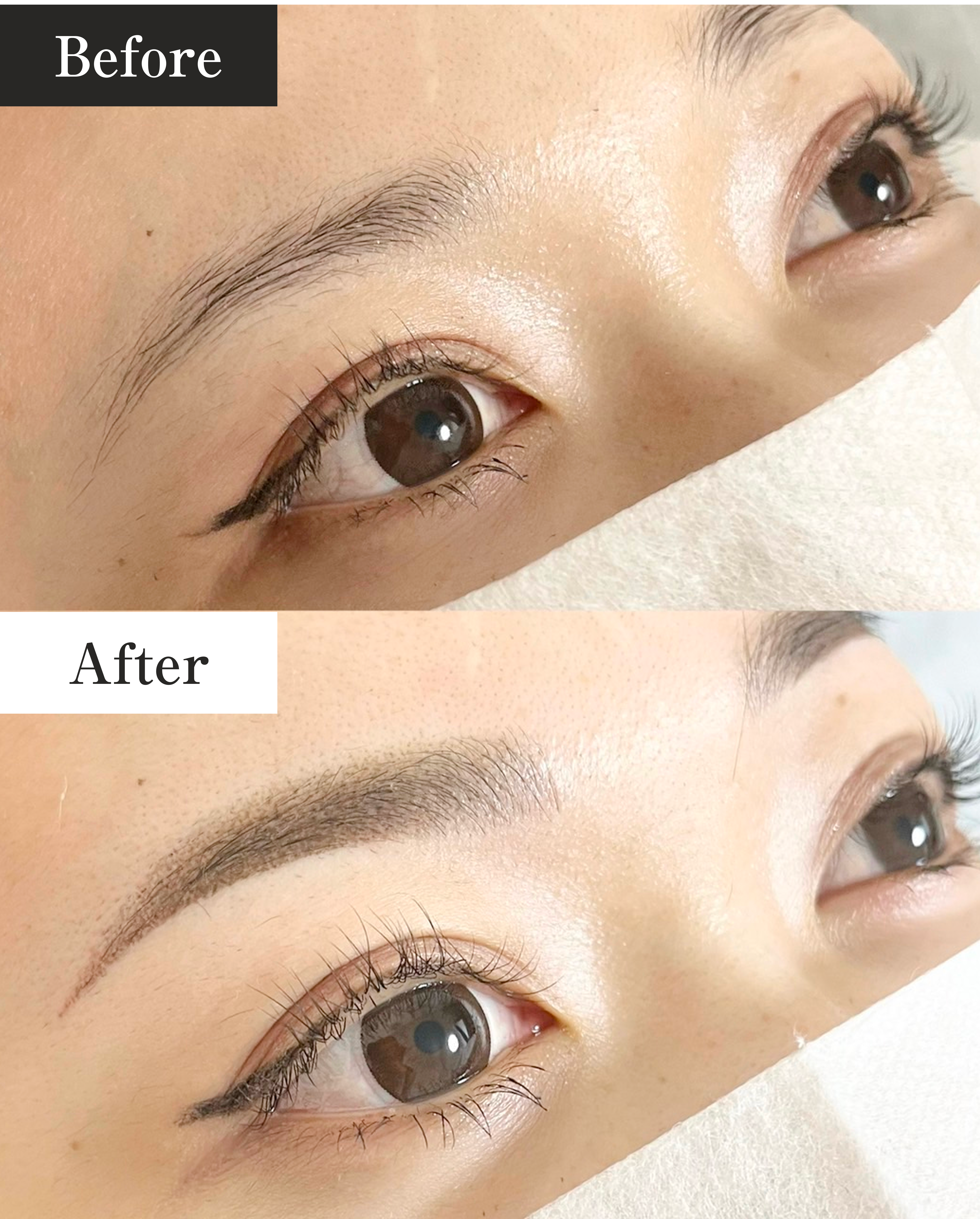 メイクをした状態で施術する前の眉毛の状態の写真